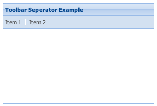 A simple class that adds a vertical separator bar between toolbar items (css class:'x-toolbar-separator').